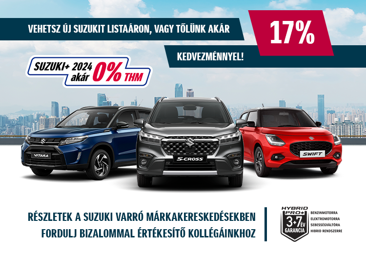 A zárt és nyílt végű konstrukcióban is elérhető Suzuki+ 2024 segítségével, akár 0% THM-es lízingfinanszírozással lehet új, 2024-es modellévű Suzuki személygépjárműve!
